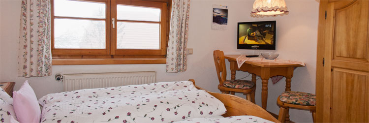 Wir können Ihnen vier schöne, geräumige Gästezimmer anbieten, die liebevoll eingerichtet sind und über DU/WC und TV verfügen